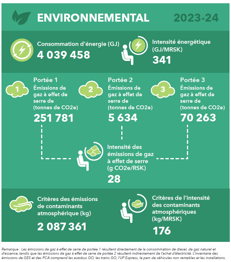 Vers un avenir durableMetrolinx, en tant qu'agence régionale de transport pour la région élargie du Golden Horseshoe (GGH), joue un rôle crucial dans l'élaboration de la mobilité de la région. De par leur nature même, les transports publics fiables, sûrs et accessibles présentent des avantages environnementaux et sociaux. Ces avantages comprennent la réduction des émissions de gaz à effet de serre, l'amélioration de la qualité de l'air, la diminution des embouteillages et un accès plus large aux emplois, aux marchés, à l'éducation, aux soins de santé et aux opportunités sociales.